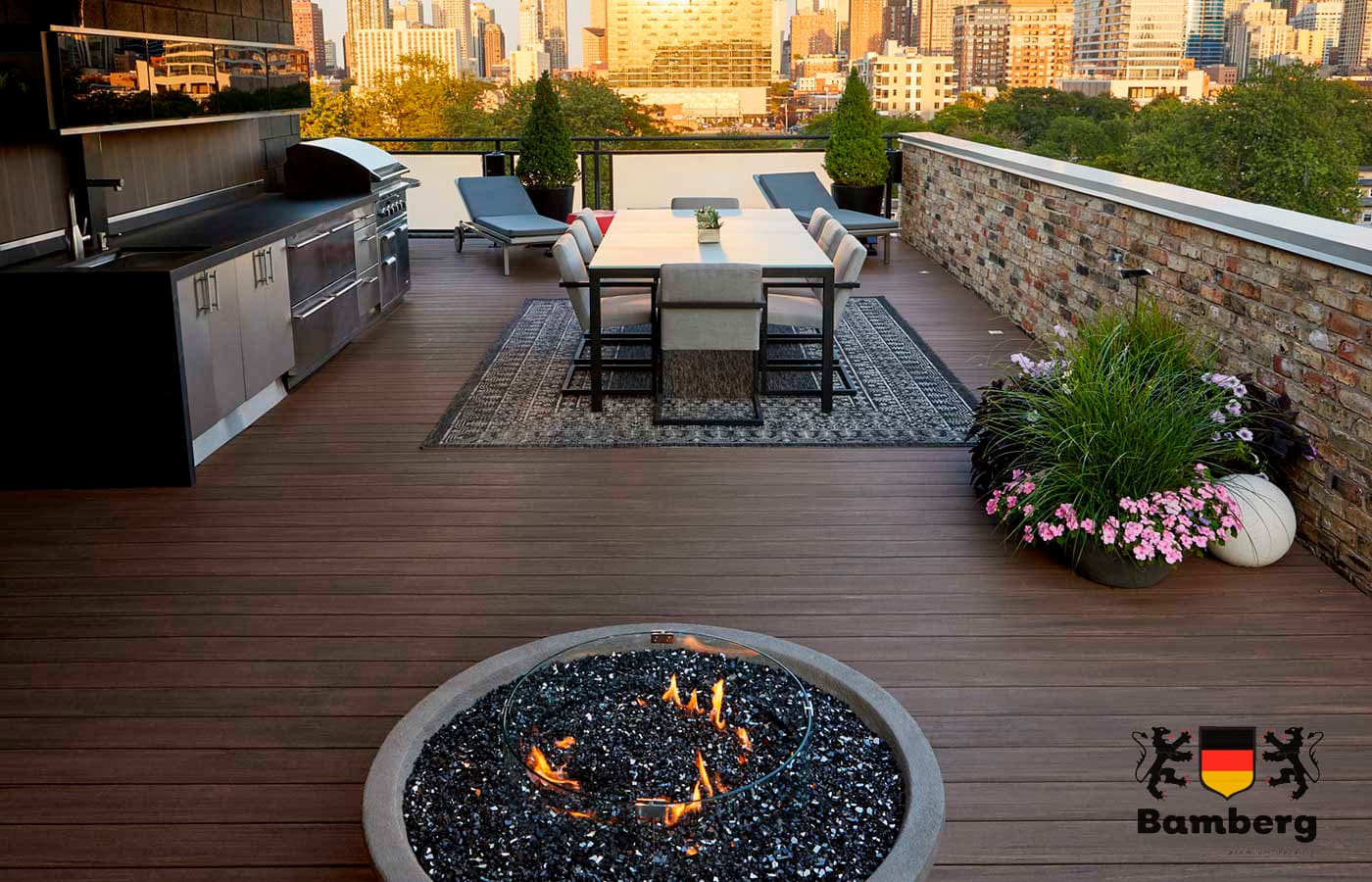 Террасная доска ДПК Bamberg Solid, Brazilian Walnut (Бразильский орех) - это идеальное решение для создания уютной и стильной обстановки на вашей террасе. Эта высококачественная террасная доска изготовлена из древесно-полимерного композита, что делает ее прочной, долговечной и устойчивой к влаге и воздействию окружающей среды.